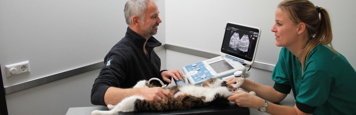 Het maken van een hartecho stelt ons in staat de hartspier en hartfunctie goed te beoordelen. Bij katten is de ziekte hypertrofische cardiomyopathie (HCM) de meest voorkomende hartziekte. Echografisch onderzoek leent zich bij uitstek voor het stellen van deze diagnose. Tijdens het onderzoek ligt de kat op een zacht kussen. In principe vindt het onderzoek plaats in aanwezigheid van de eigenaar.